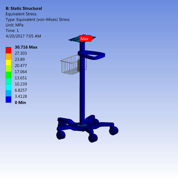 Analizlerde 60 kg yükleme sonucunda malzemelerde herhangi bir plastik deformasyon olmadığı, malzemenin elastik bölgede kaldığı görülmüştür. Sonuç olarak ürün sehpa üzerine 60 kg yük konulduğunda ‘emniyetli’ olduğu sonucuna varılmıştır. Bu şekilde imalata geçilmesinde bir sakınca olmadığı gözlemlenmiştir.